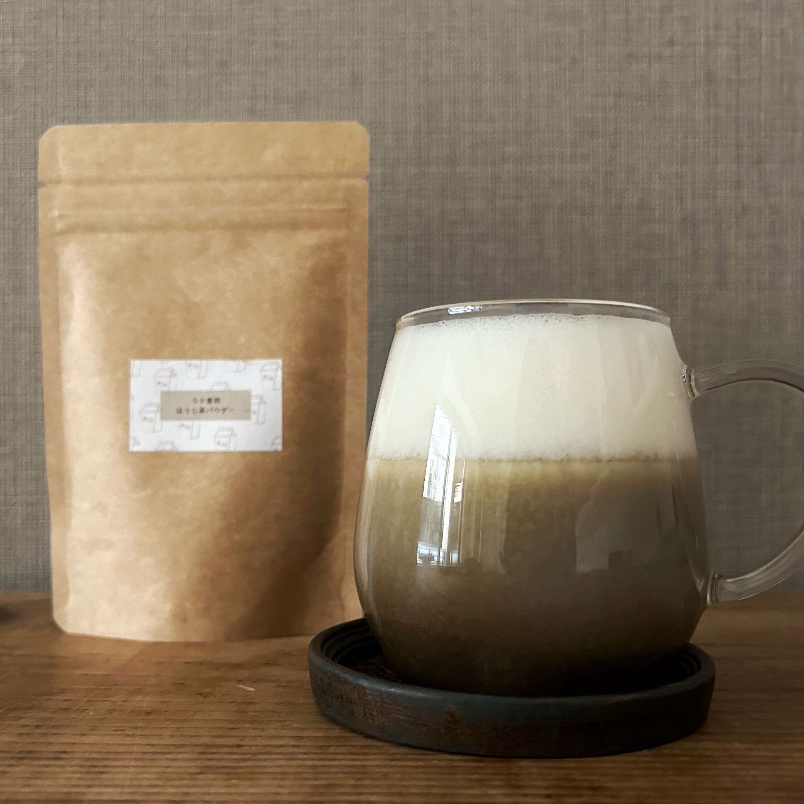 パウダータイプのほうじ茶ラテ専用ほうじ茶です。ミルクに負けない味わいで、とても滑らかです。専用の簡易シェイカーをお付けしています。